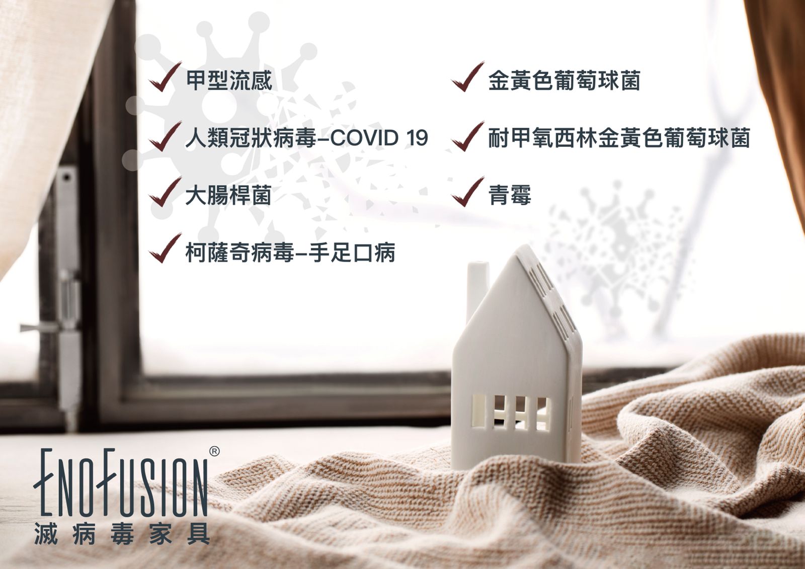 甲型流感與手足口病對健康的威脅不容忽視,及早部署家居防護尤為重要。在日常打理方面,EnoFusion® 家具並不需要額外的特殊清潔,只需用清水濕布輕拭並擦乾水分即可,簡單方便。家具本身能持續發揮滅病毒效能,減少家人因接觸而受感染的風險。對於有幼童或長者的家庭而言,這不僅是一種生活便利,更是一種安心保障。
